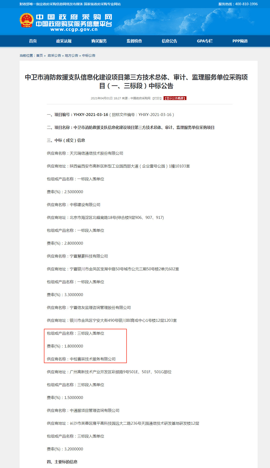 奮力開創(chuàng)!祝賀中檢賽辰技術(shù)服務(wù)有限公司(簡稱:賽辰)中標(biāo)中衛(wèi)市消防救援支隊(duì)信息化建設(shè)項(xiàng)目第三方技術(shù)總體、審計(jì)、監(jiān)理服務(wù)單位采購項(xiàng)目(三標(biāo)段入圍單位)。